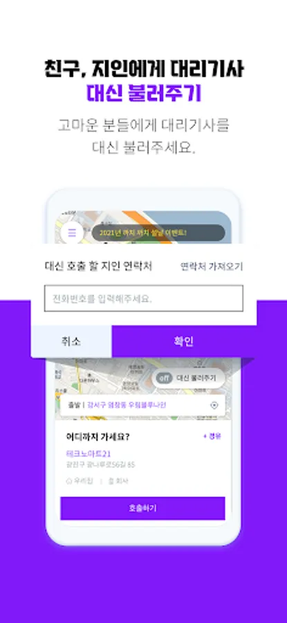 2) Call on behalf: Provides a function to call (including payment) a substitute driver for a friend or acquaintance. Being able to call several things for you at the same time, you can be a cool person to stop drunk driving at a drinking party.