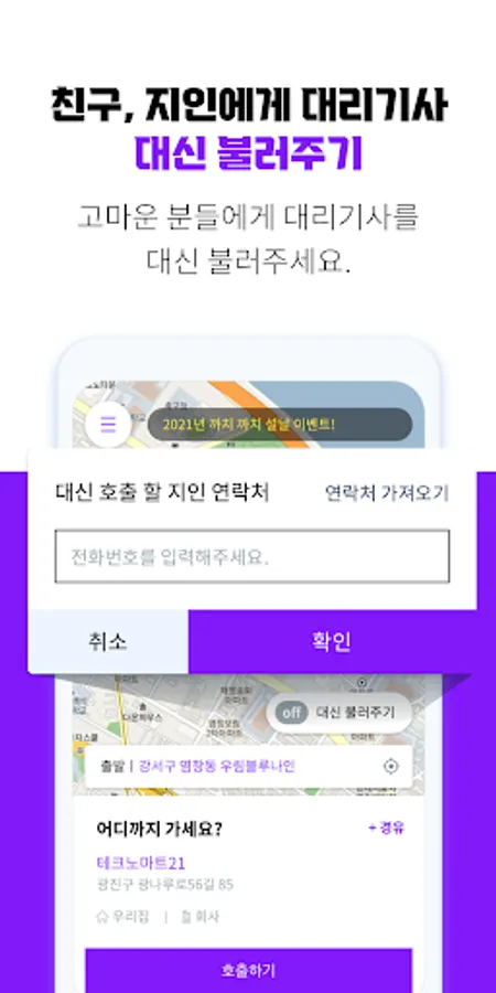 We hope you will enjoy the easy-to-use and fast mobile surrogate driving service, as well as various benefits and news through the Sangheum surrogate driving app.