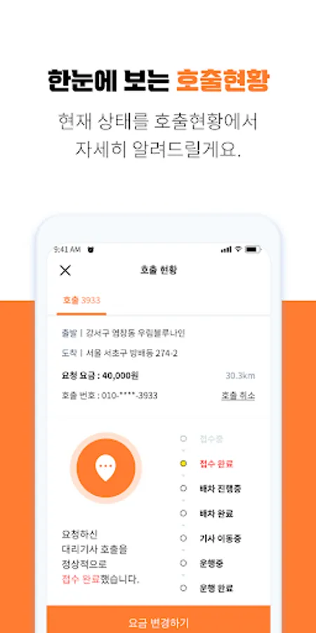 4) Real-time call status view: You can see at a glance the status of calls from the driver and the surrogate driver who called you, from reception to operation status.
