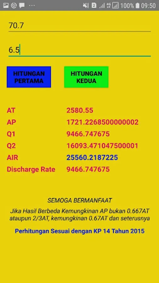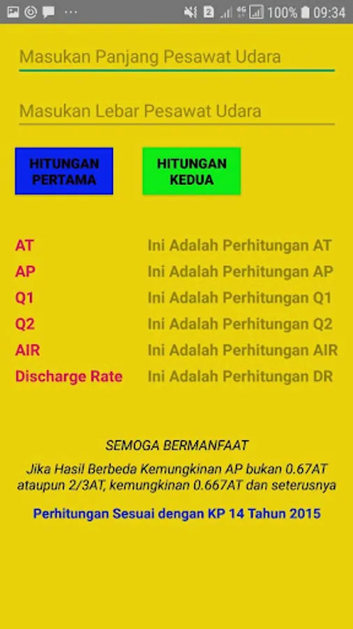 this is an application to calculate the amount of airplane aircraft in accordance with KP 14 regulations in 2015