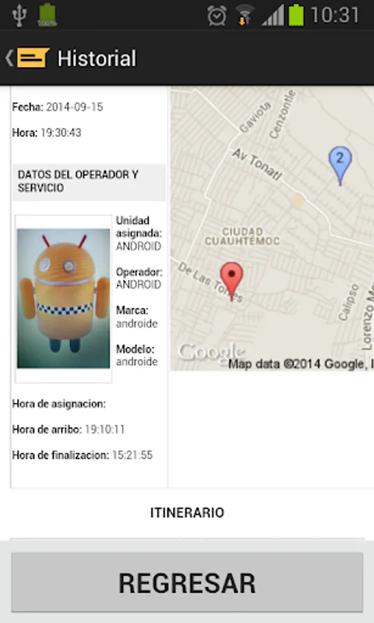 APPLICATION THAT ALLOWS YOU TO REQUEST A SERVICE FROM THE COMFORT OF YOUR MOBILE DEVICE AND MAKE A TRACK DETAIL UNIT THAT MADE YOUR SERVICE AND OPERATOR.