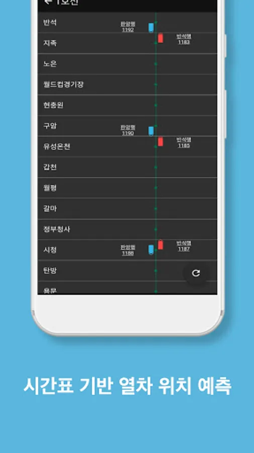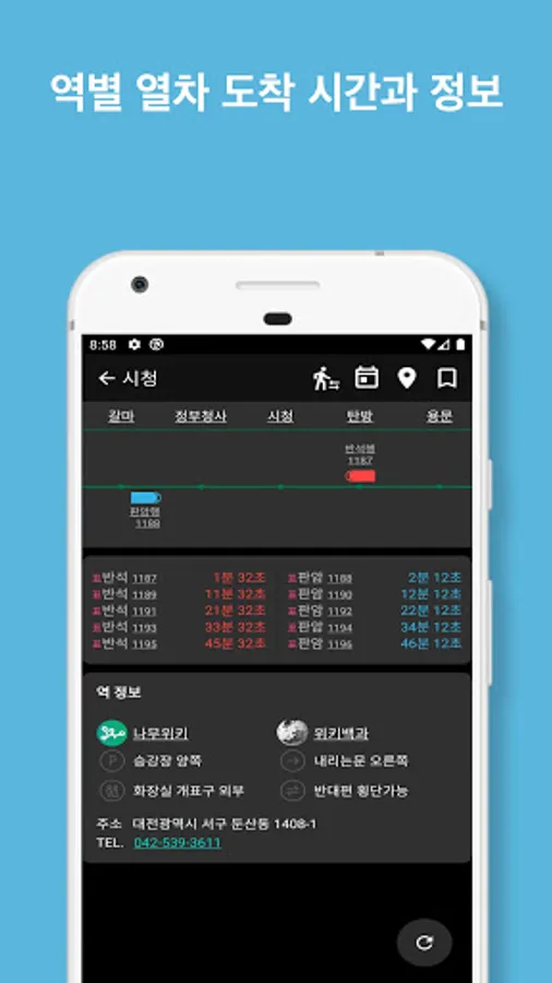 This app collects and uses historical information and timetable information collected from public data portals, Daejeon Metropolitan Rapid Transit Corporation, Ministry of Land, Infrastructure and Transport Railway Industry Information Center, Rail Blue.