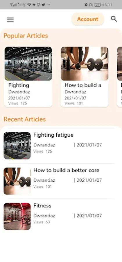 Articles and blog related to fitness sport, healthy food and fitness Food will be viewed in the app and also