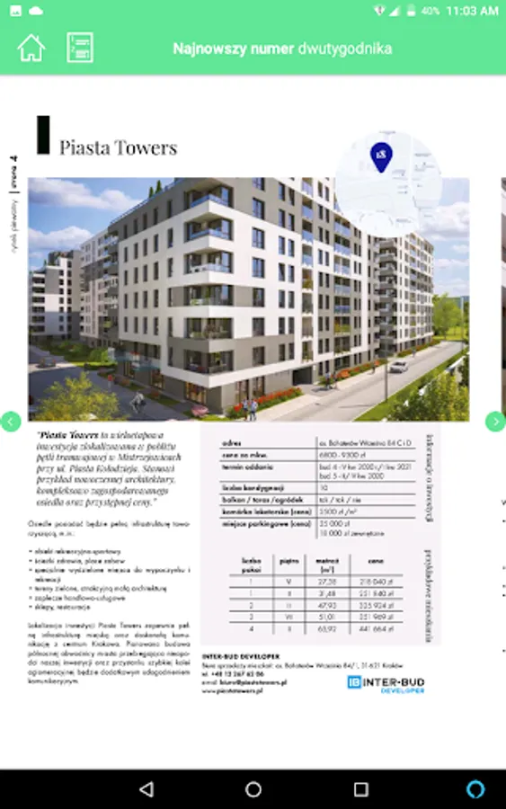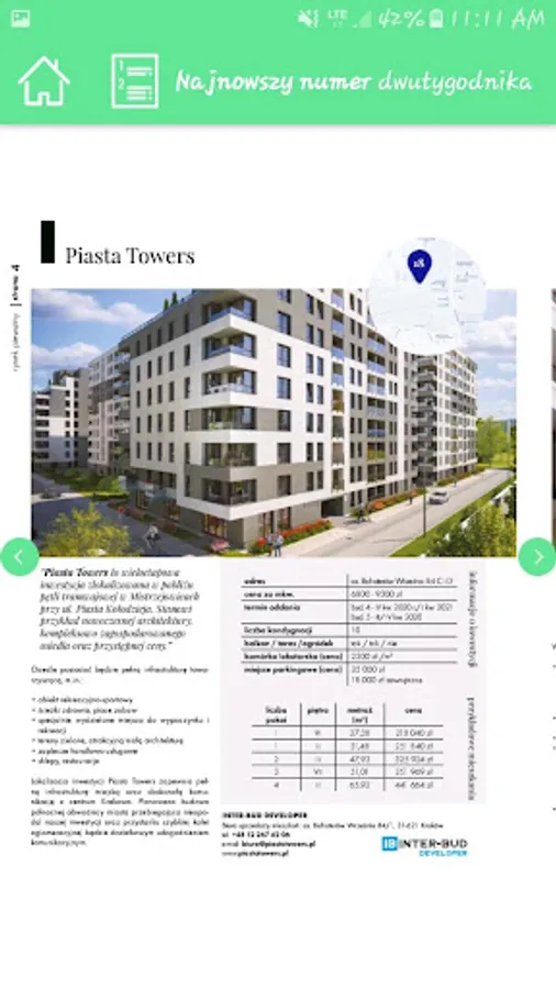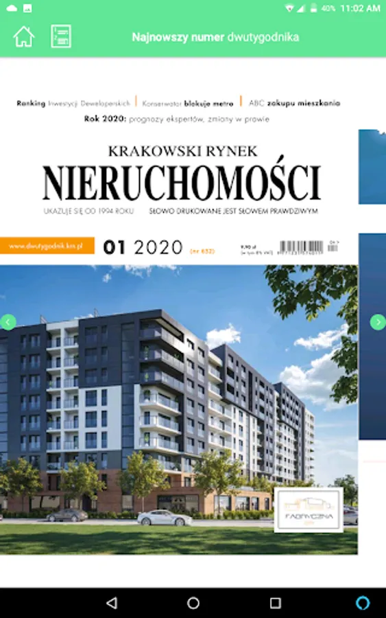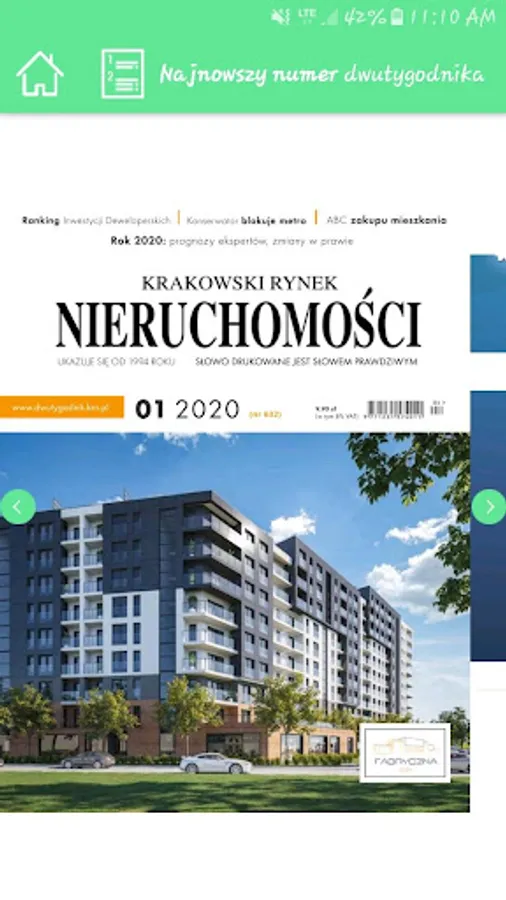 - Quick opening of the e-edition in pdf form, downloaded from the Krakow Real Estate Market website.