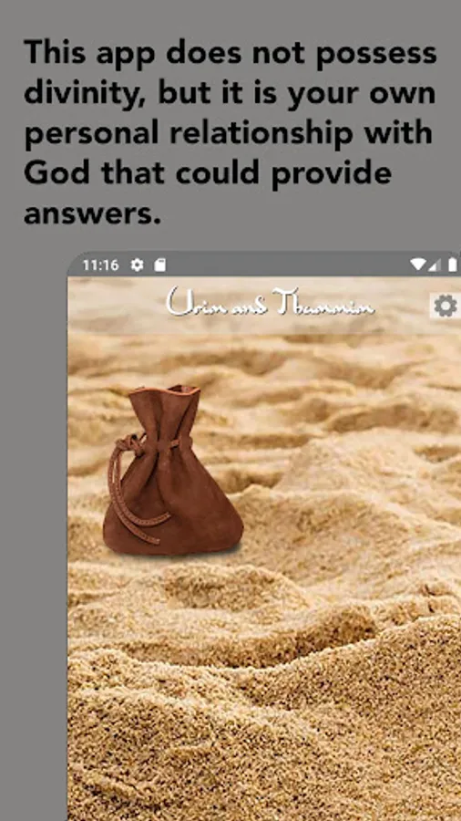 This app does not possess divinity, but it is your own personal relationship with God that could provide answers. We make no claim, explicit or implied as to the historical or translation accuracy, and/or ordained/ethereal nature of this app. It is for novelty use only.