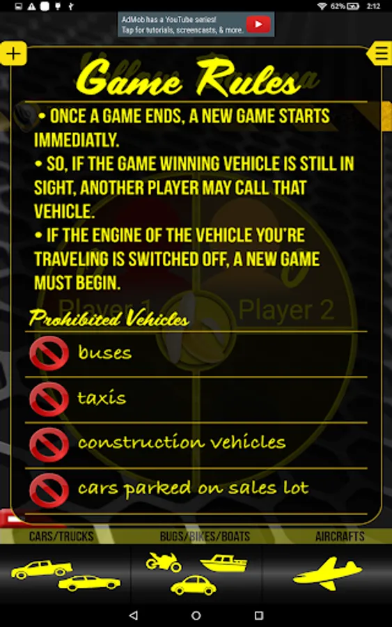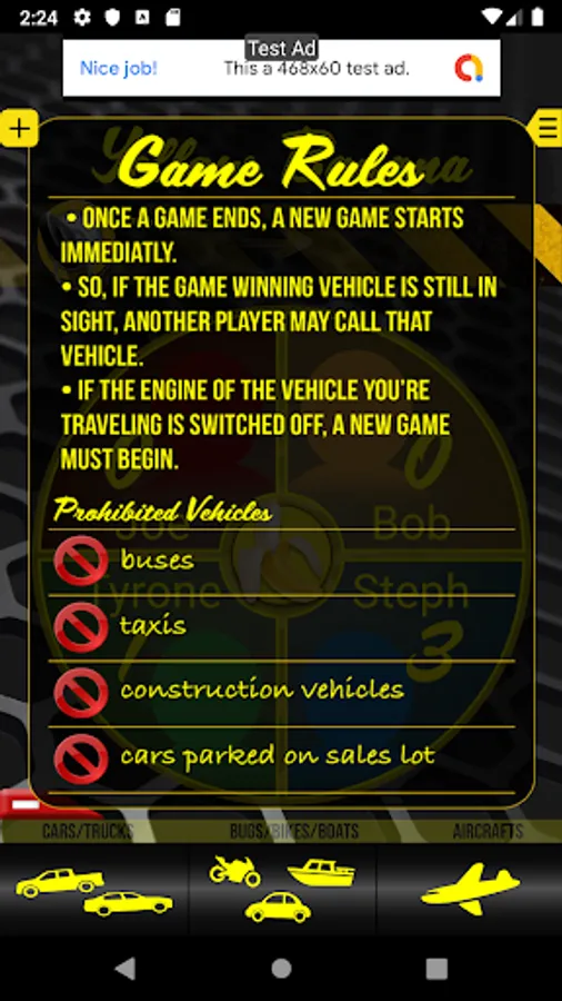 If you spot a yellow vehicle, yell out “Yellow Banana!” The first player to collect 10 points wins the game. Yellow motorcycles are worth 5 points, as are yellow slug bugs (Volkswagen Beetles) and yellow boats. If you happen to see a yellow airplane or helicopter, you get 10 points, giving you an automatic win!