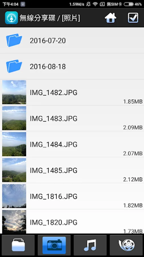 4. app to call phone camera, the pictures stored in the wireless photo sharing via wifi cloud Singles "(Wifi Cloud) within