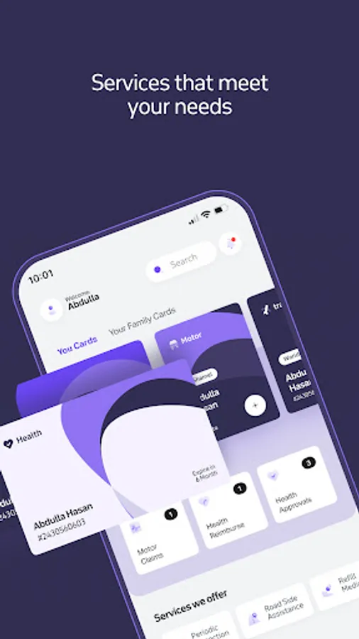 - تقديم وتتبع المطالبات والسداد الرقمية: يمكنك تقديم مطالباتك المتعلقة بالتأمين الطبي والمركبات والسفر وغيرها وتتبعها