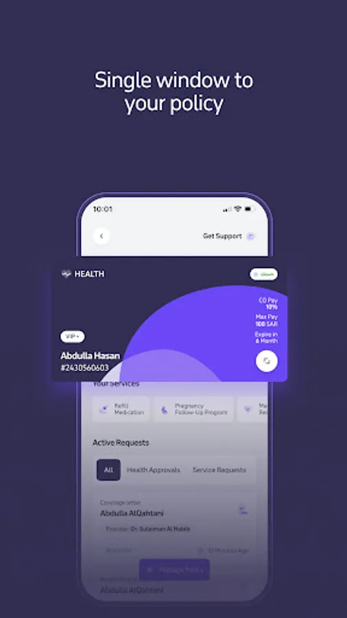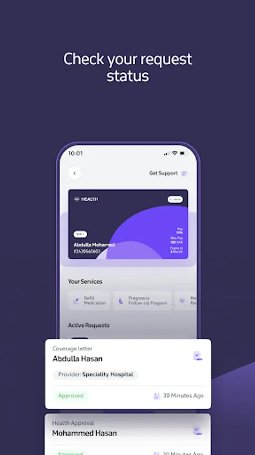 - عرض ووصول سريع لجميع تفاعلاتك ( الموافقات الطبية والطلبات والمطالبات)