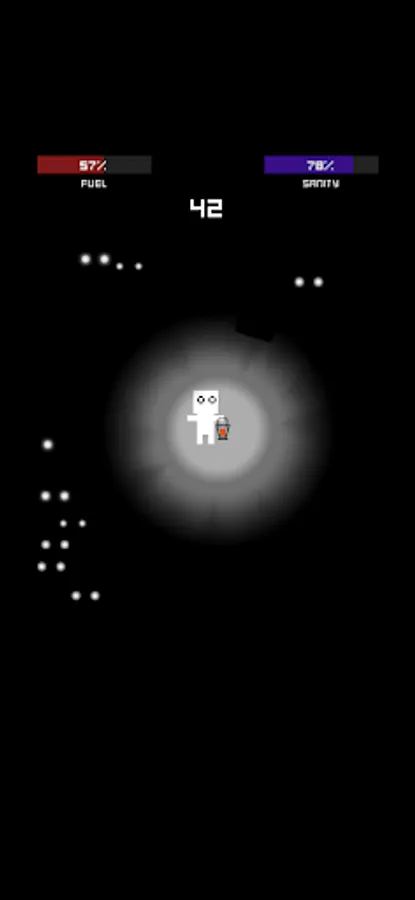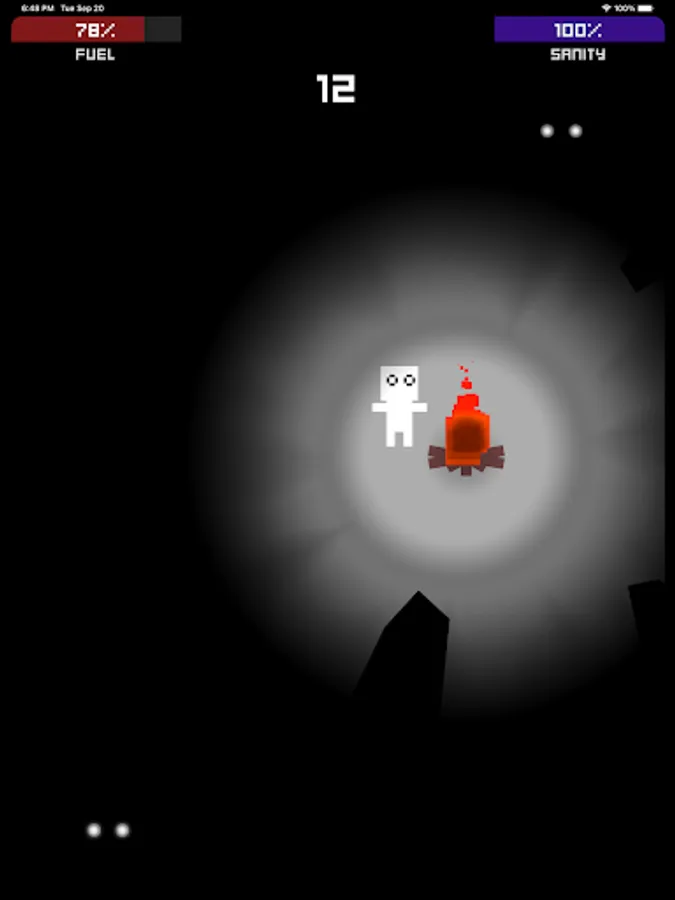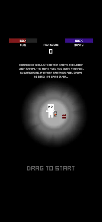 Extinguish Ghouls to retain your sanity. The lower your sanity, the more fuel you burn. Find fuel by wandering. If either sanity or fuel drops to zero, it's game over.