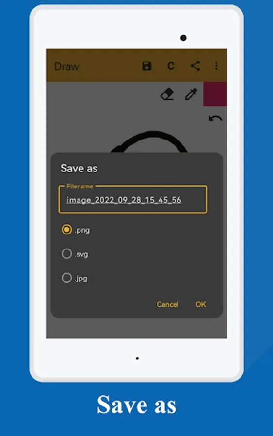 ✔️ This sketchbook supports many different formats like PNG, JPG, or SVG vectors