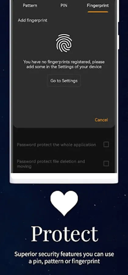 Rest assured that this file organizer prioritizes your security, offering robust security features such as password protection for hidden items, deletion, or the entire app. Choose between pattern, pin, or fingerprint authentication to safeguard your data. The fingerprint permission is required for securing hidden item visibility, file deletion, or the app as a whole. File Manager operates offline, guaranteeing the utmost privacy.