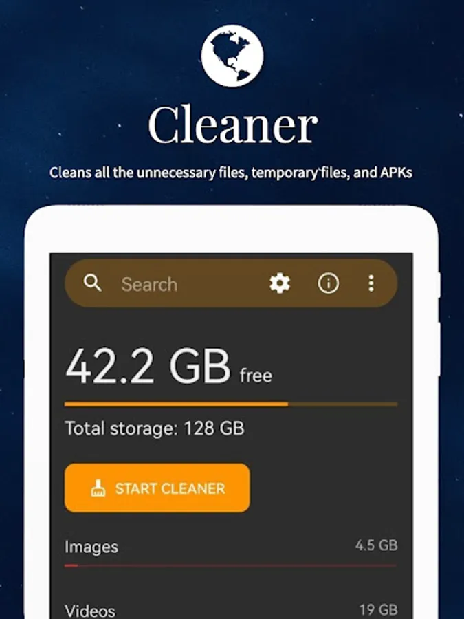 Clean: It is the primary feature that cleans all the unnecessary files, temporary files, and APKs of apps in just one tap.