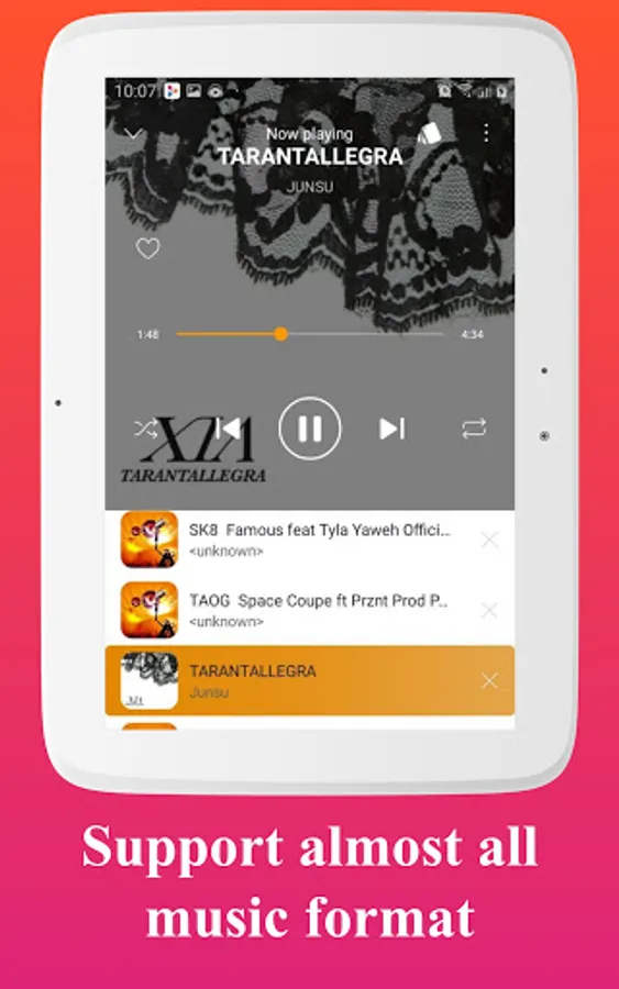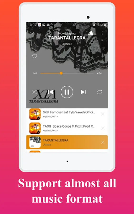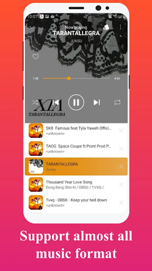 Support almost all formats supported and stylish UI. Browse all songs on android device, listen to music without wifi, you deserve to get this perfect offline music player for free now!