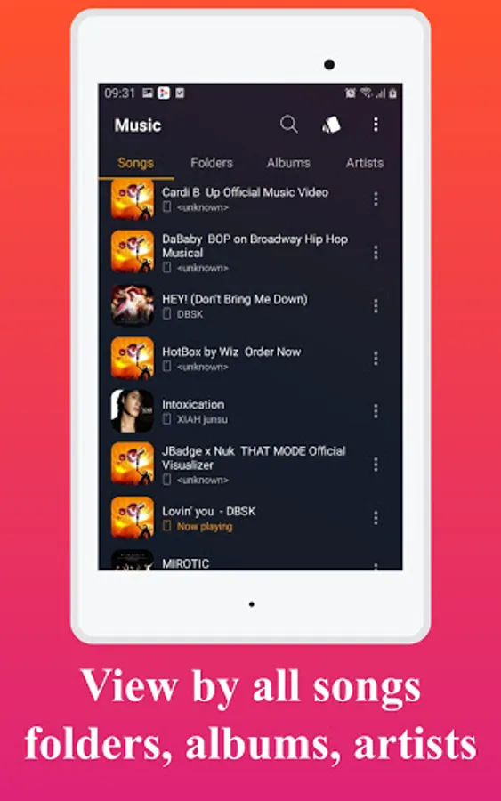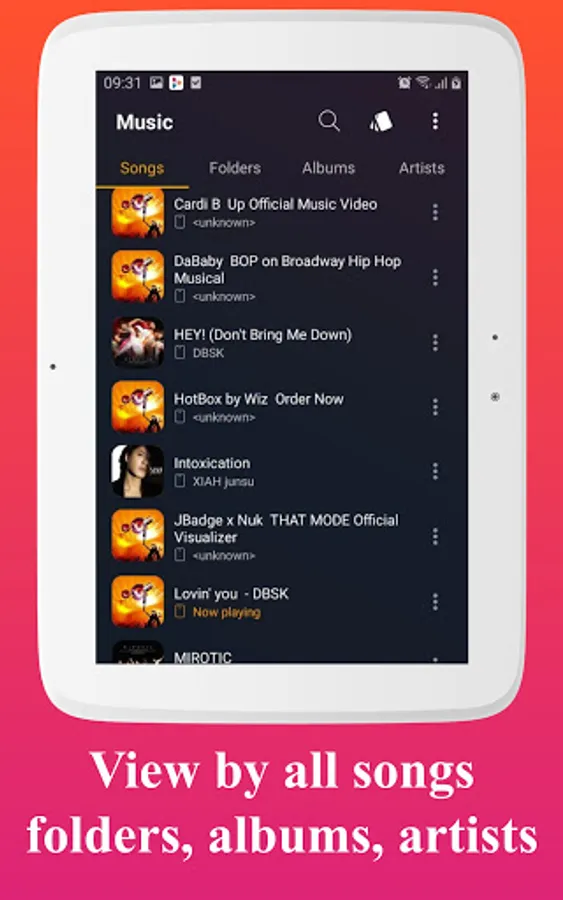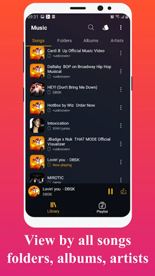 🎵 View by all songs, artists, albums, folders and playlist.