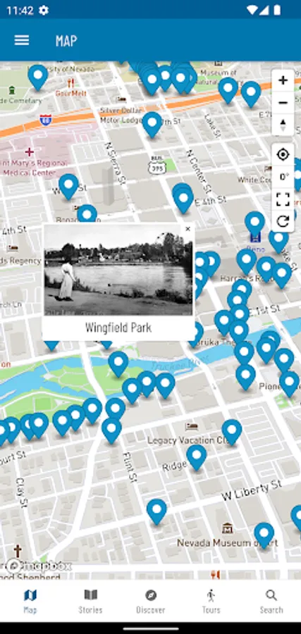 Developed by the Special Collections Department at the University of Nevada-Reno Library, Reno Historical is a mobile application that provides an interpretive view of the city’s history. Search for interesting people, places, and events in Reno history and enjoy curated tours of the city. Each point on the interactive GPS-enabled map includes historical information about the site, with historic images from Special Collections, the Nevada Historical Society, and other top historical collections. Many sites also include audio clips and short documentary videos based on the University of Nevada Oral History Program’s collection of interviews.