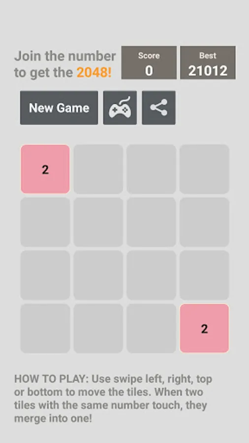 your aim ? Achieve the 2048 tile combining minor tile set on the board. When you have two identical tile on the same line or column (and no other tile between them) you can fusion them, their value will add up over and over.