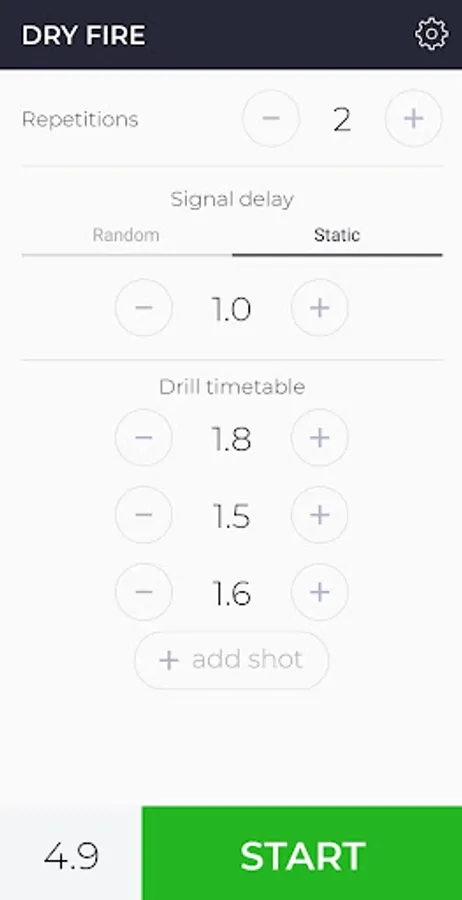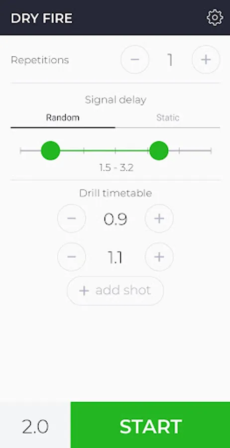 Dry Fire is the best dry fire practice app. Are you just starting out in shooting, or have you been practicing for a long time and want to become a top shooter in the USPSA, IDPA or IPSC? Our application will help you. Choose the number of repetitions (1 - 99), the interval between repetitions (in order to have time to prepare for a new round), set the interval for the start signal, time cuts for different elements of the drill and go ahead!
