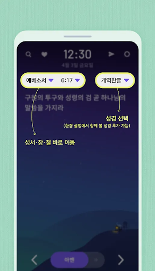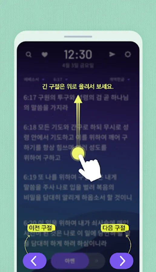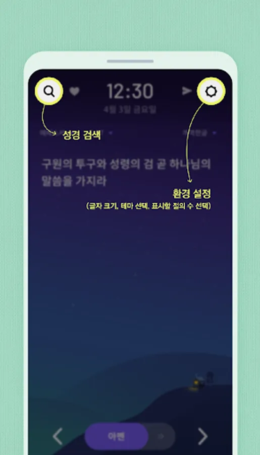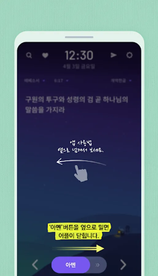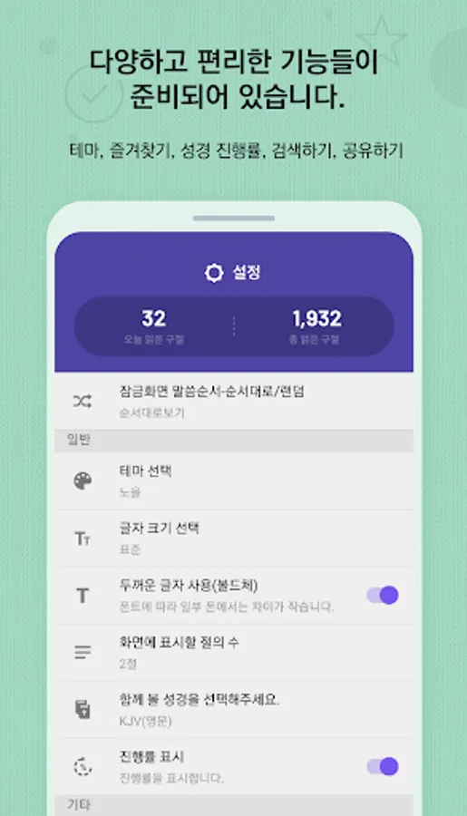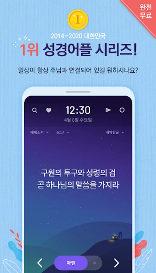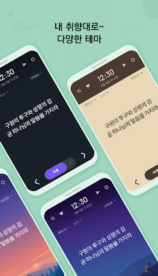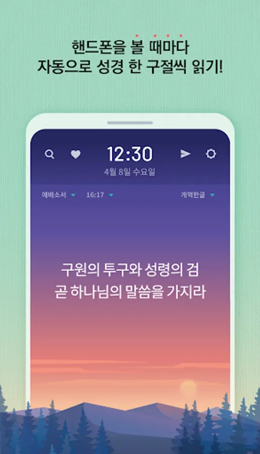 You don't have to make grandiose plans to pray consistently for reading the Bible, and you don't even need to open the Bible app. It is an application that allows you to read the Bible from time to time on the lock screen (first screen) as it permeates your life. Do you often open your phone? As much as you read the Bible, you can get closer to God. If you don't want to read, we will create an environment where you can't read.