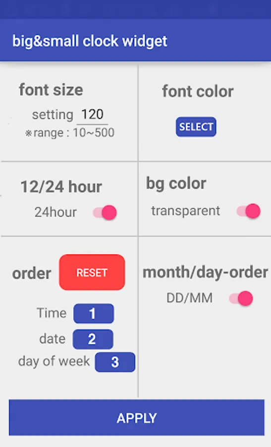 -> Press and hold on the wallpaper to place the clock widget at the desired size