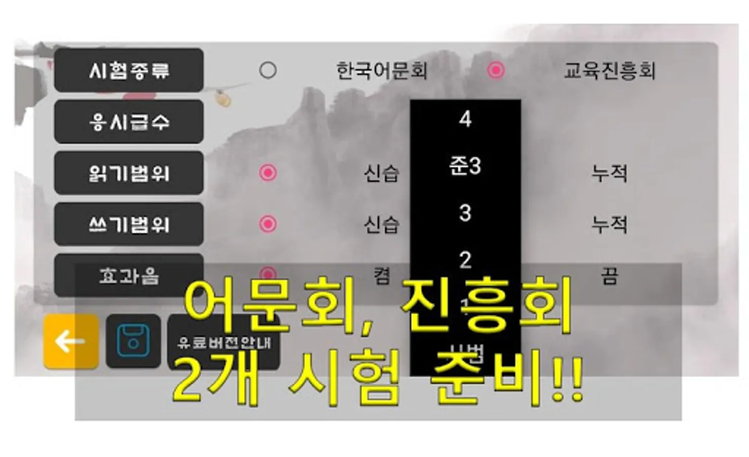 (어문회 특급, 특(II)급, 진흥회 사범급은 일부만 제공, 추후 업그레이드 예정)