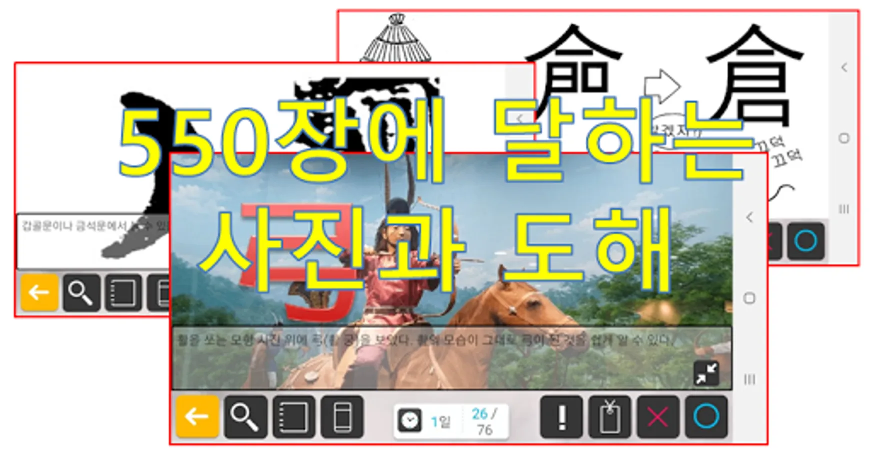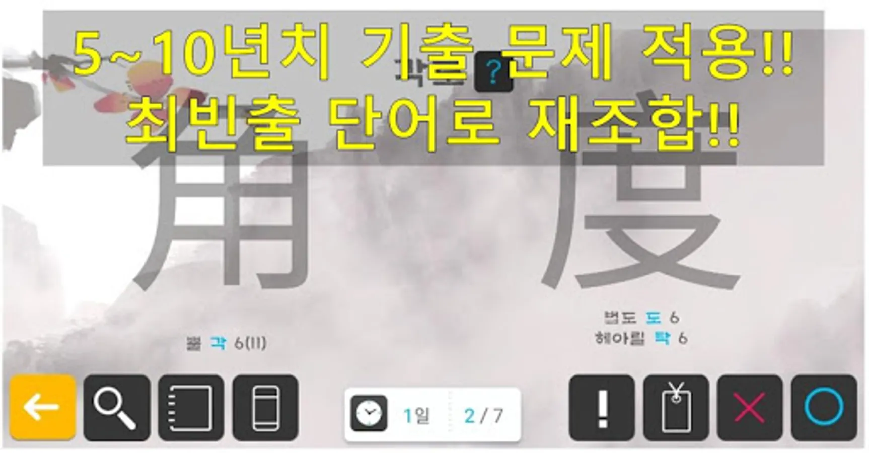- 단어와 사자성어 중심으로 5천개 한자 수록