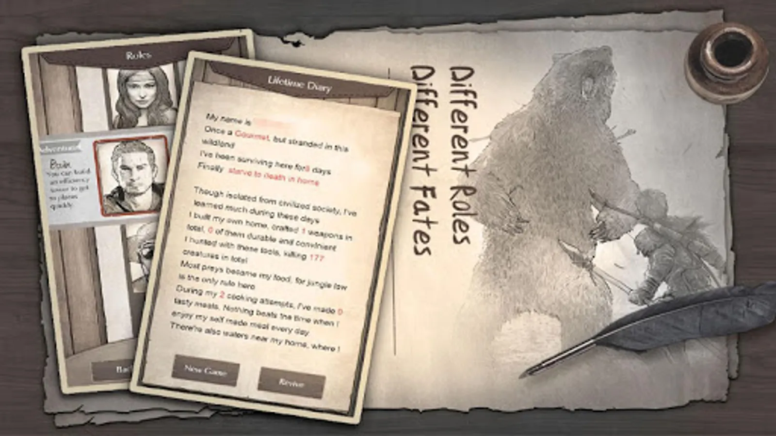 To survive and escape, you have to craft camp, explore jungle, mountain, ruins, and so on territories, trade with natives, fight against beasts and cannibals, go deep into mystical relics, solve puzzles...