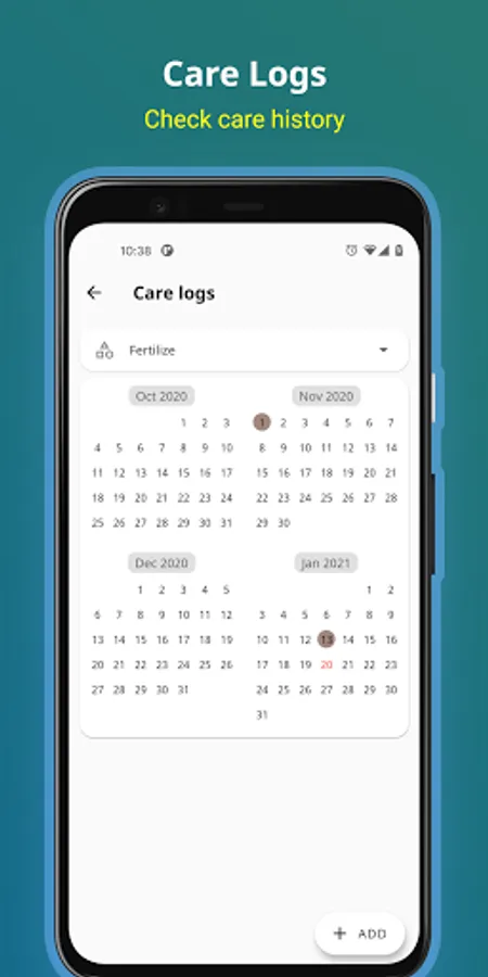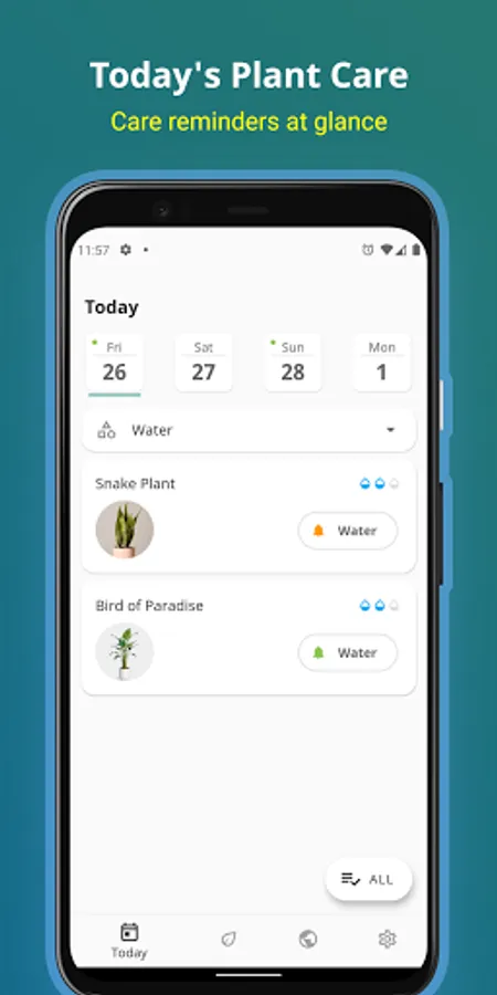 • Reminders for various plant cares (water, fertilize, mist, repot and user defined cares)
