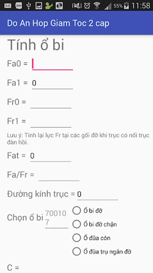 This software is used to calculate the two-speed gearbox in the design of mechanical transmission system, also known as machine design or detailed machine design. It is based on the theme of Ho Chi Minh City Polytechnic. This software includes the calculation and distribution of transmission ratios, belts, chains, straight toothed teeth, inclined teeth, taper teeth, screws and screws, axes, and rollers. The results may be wrong about 3%. Particularly, the axis calculation is being completed and will be updated later. Sometimes the software crashed because of many downloads and unprogrammed program, hope you sympathize, the team will improve gradually through the following updates.