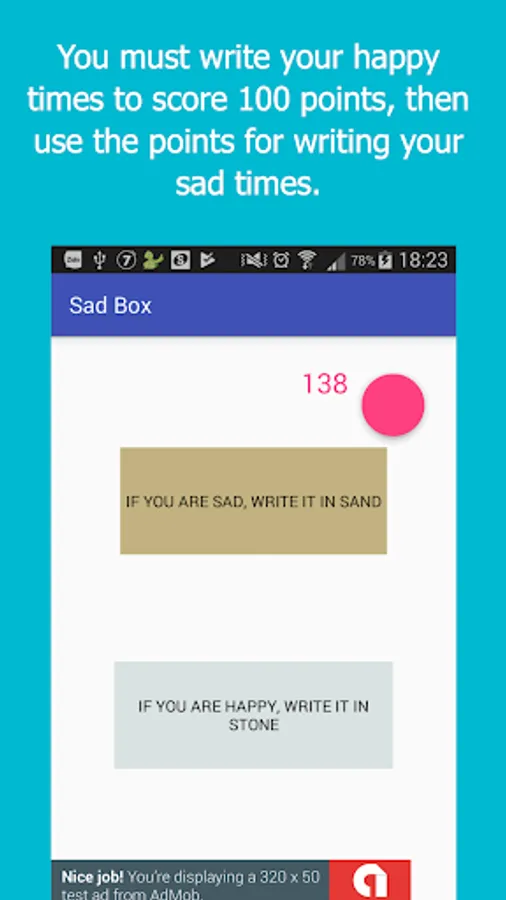 - If you are stress, just open the sad box app and write down, no need to keep the stress inside, write it down and it will be washed away.