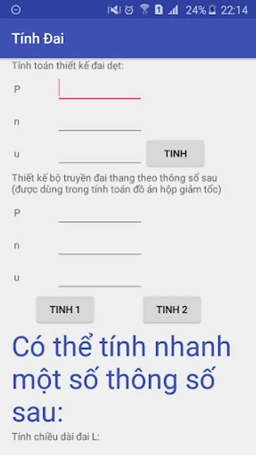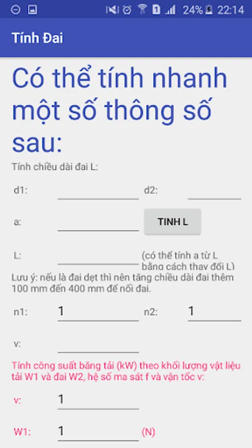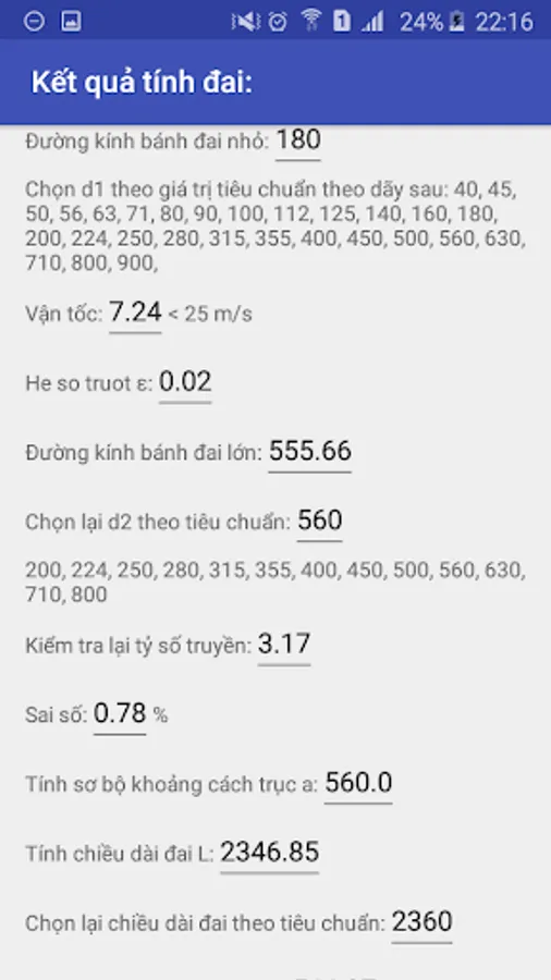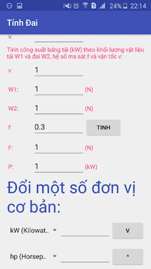 In addition, the app calculates the belt transmission also has the conversion of the basic units, making it easy to convert from kW to hp.