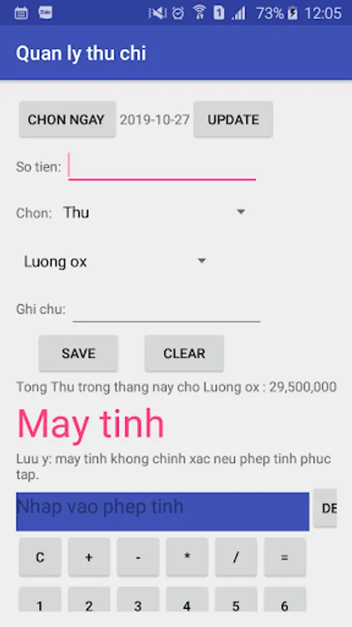 In the app there is a calculator to directly calculate the total expenditure and revenue.