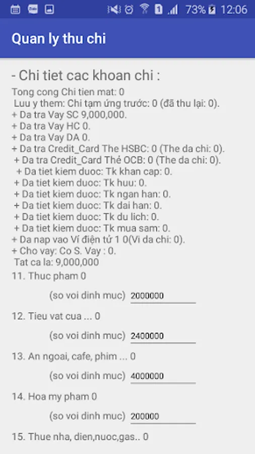 Besides, the credit card section has detailed information for old debt, money spent on food, dining out, interest, ...