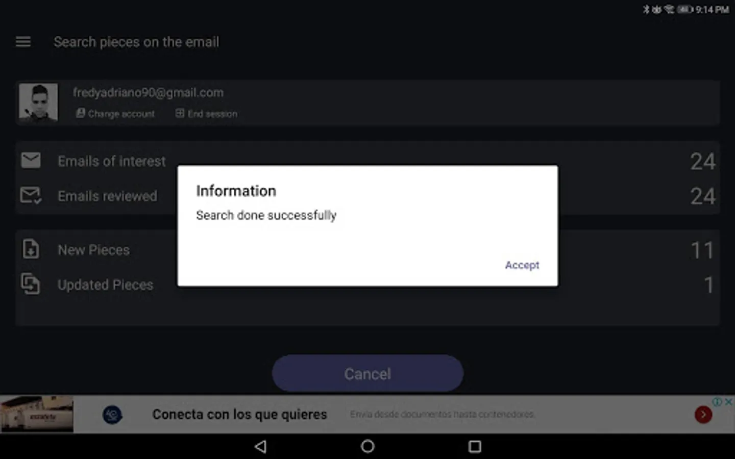 4. Load automatically the pieces from your Gmail, Outlook o Hotmail accounts.