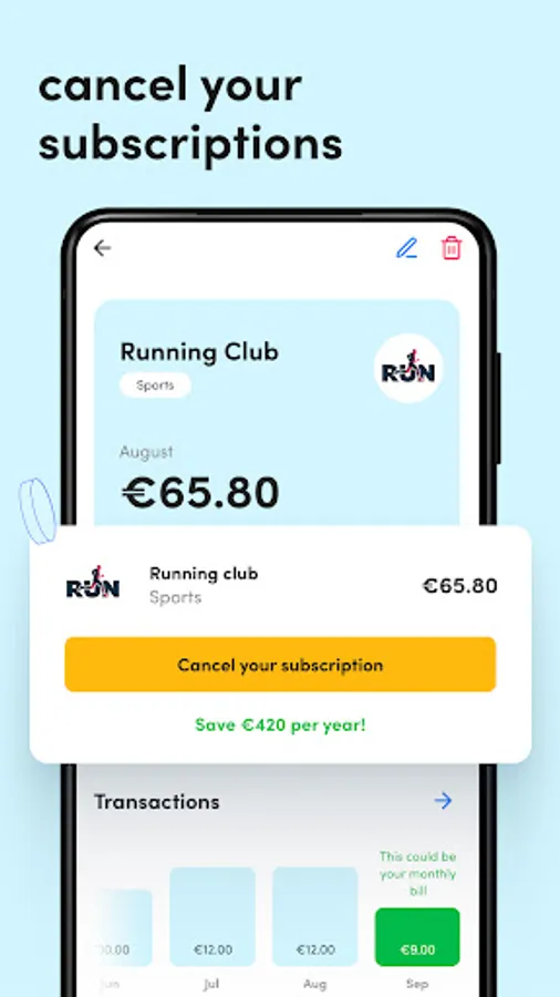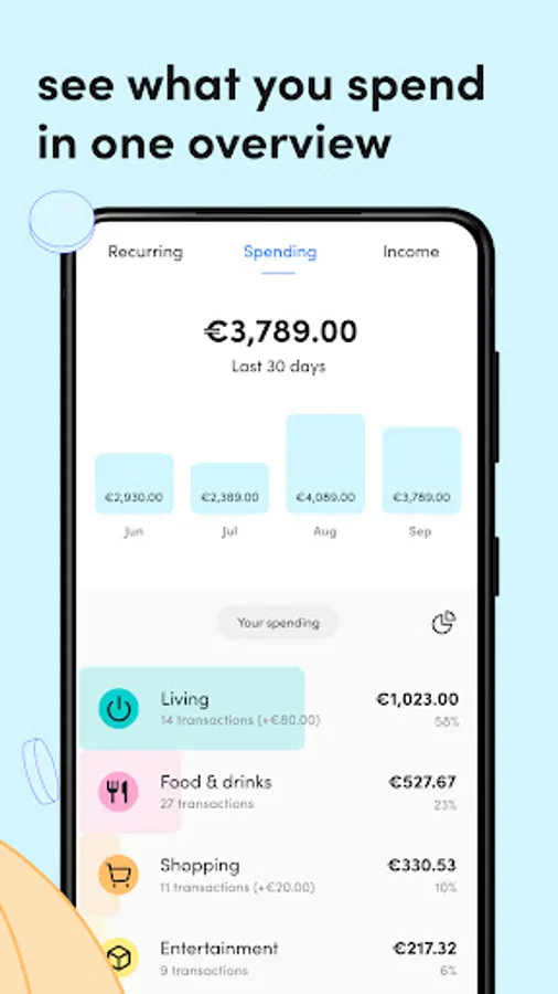 Your subscriptions, expenses (such as groceries) and income are automatically filtered from your bank statements and placed in one clear overview. Giving you more control over your money ๐ถ