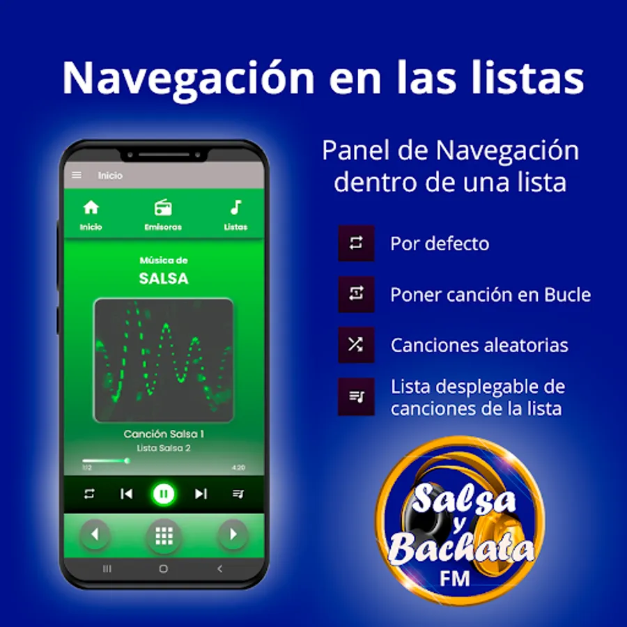 Salsa y Bachata FM is an application created so that you can listen to the best salsa, bachata, zouk, kizomba and reggaeton radio stations, among others, completely free.
