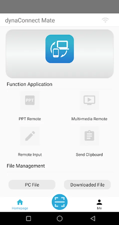 dynaConnect Mate supports sharing files between PC and smartphone, sharing a clipboard, operating presentation and media player on the PC from smartphone, entering text from smartphone to PC, operating smartphone with PC keyboard and touchpad, etc. The functions that can be used differ depending on the smartphone.
