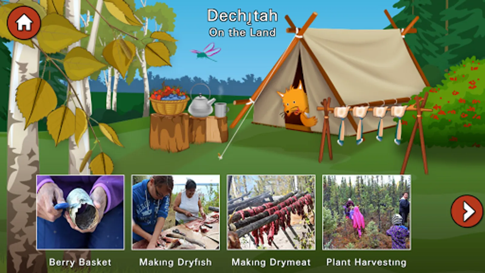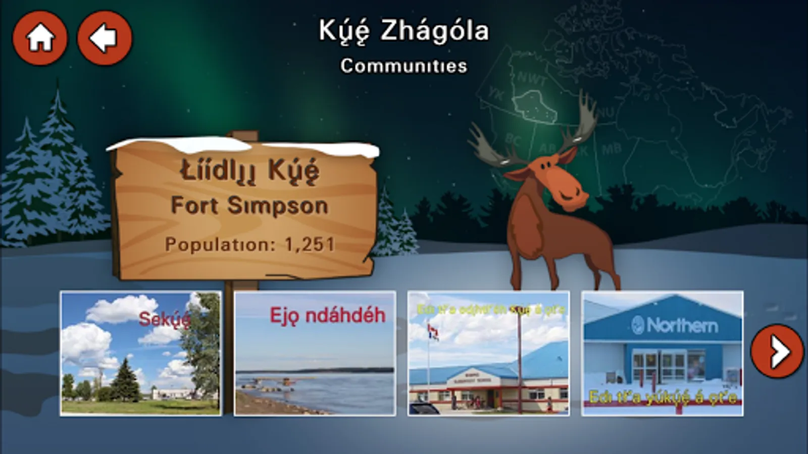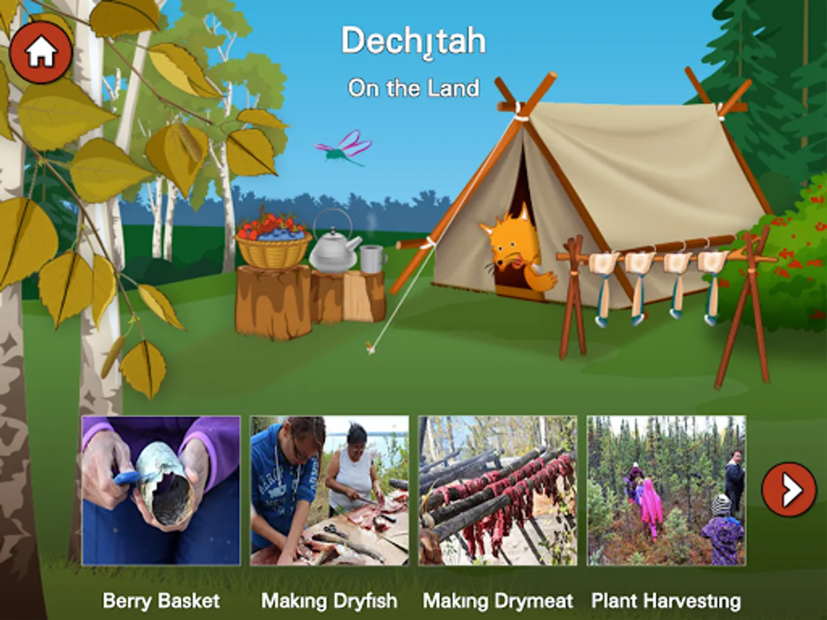 The Deh Cho Friendship Centre is pleased to present this interactive resource to learn basic Dene Zhatie ( South Slavey) for ages 3 and up, with audio and images of the Dehcho Region of the Northwest Territories of Canada. Watch demonstrations of traditional cultural activities performed by community members, hear the language in use, learn basic sounds and words of Dene Zhatie in an entertaining environment developed for children, but of interest to all ages.