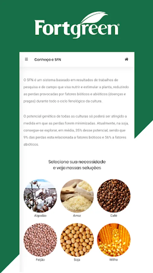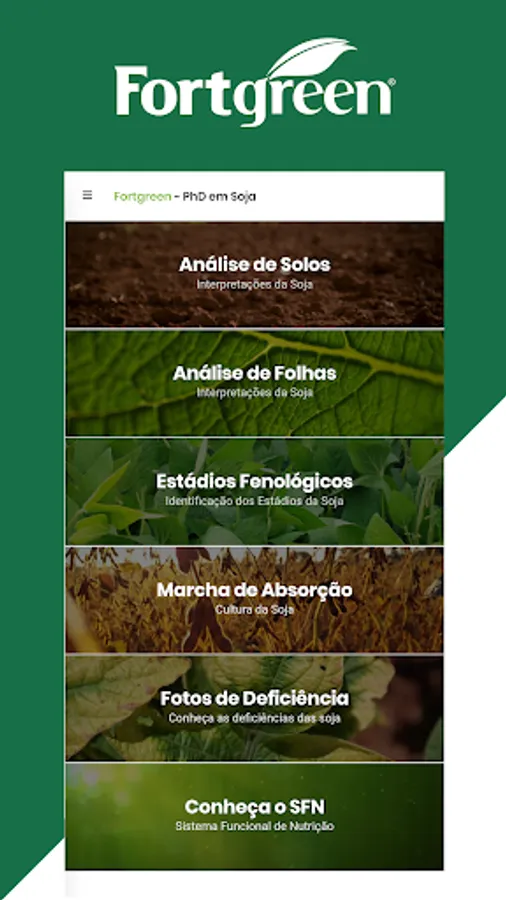 The Fortgreen PhD in Soja is an application that helps you identify the current growth stage of the soybean crop in his field and the absorbed nutrients.