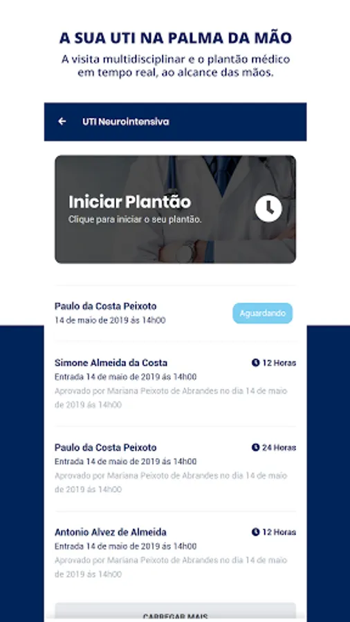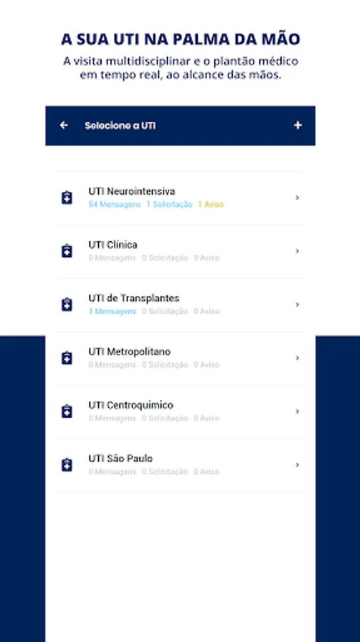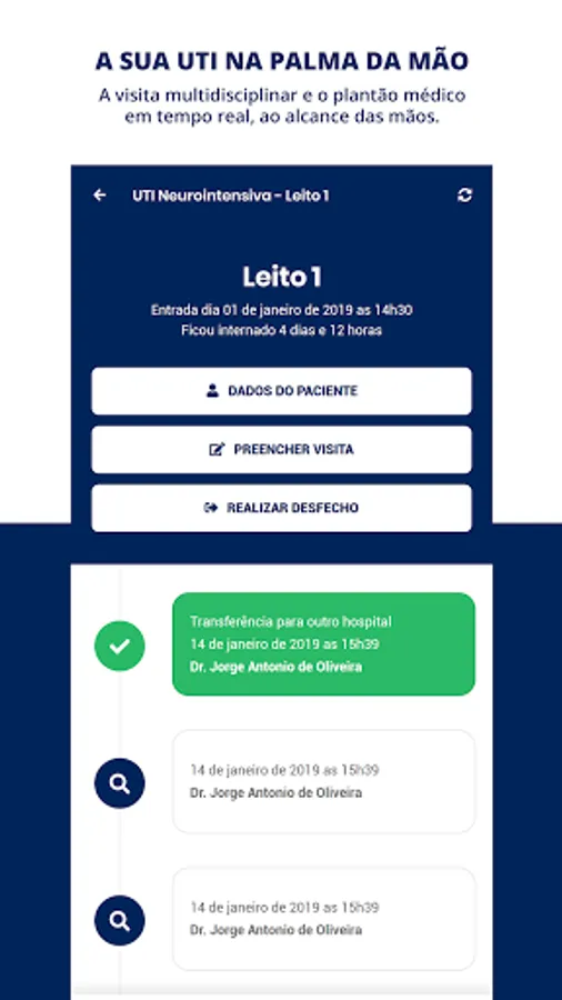 The multidisciplinary visit and the medical service in real time, at your fingertips. Simple and safe tool to facilitate data recording during the shift and the multidisciplinary visit. Avoid the loss of information during the shift shift and make communication clear and efficient between team members. Checklist easy to fill at the bedside, customizable to suit the specific needs of each unit, compatible with the main operating systems available on Android and IOS platforms. Offers the calculation of SAPS 3 and SOFA.