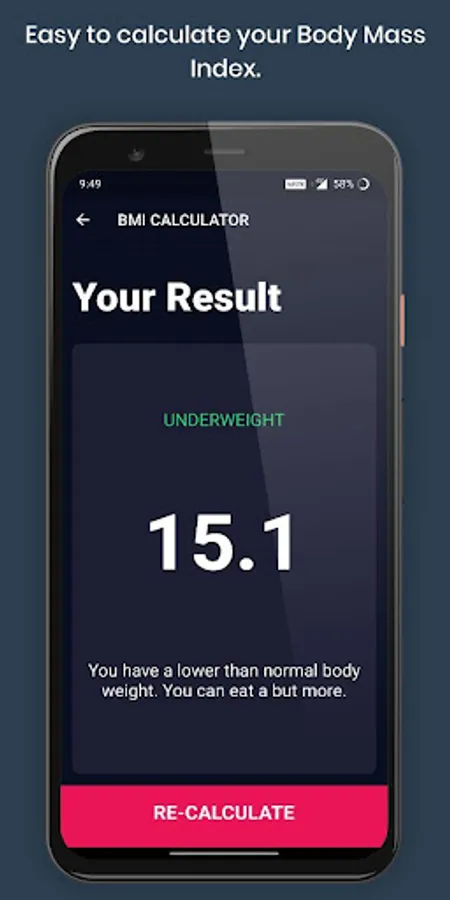 After hitting the calculate button our BMI Calc suggests you to gain or loose weight based on your results.