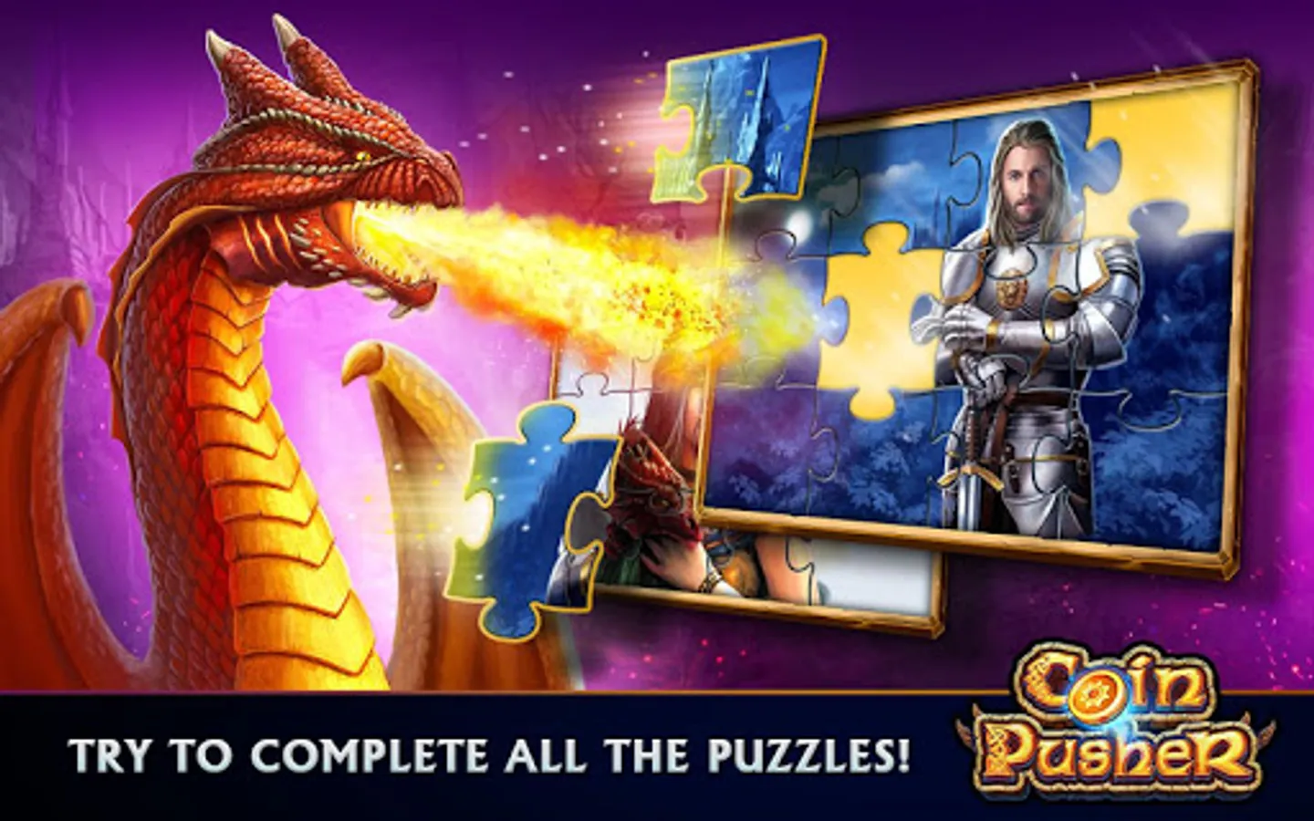 If you get stuck, use the Shake option; every collected coin fills your Shake meter. You can activate it when it reaches one of the three levels: Low, Medium or High. Activating this feature shakes the table making the coins on the edge fall off the table. Collect 4 or more coins at once to trigger a Coin Attack; this will create and spread special goodies, prizes and puzzle pieces. Once you collect all the gold puzzle pieces, 12 to be exact, youβll open the secret door of the room which contains a huge amount of rewards. Puzzle mini games unlock at level 5, and from there each level of our coin pusher has a puzzle mini-game to solve. Keep gaining XP to collect all the surprise rewards waiting for you!