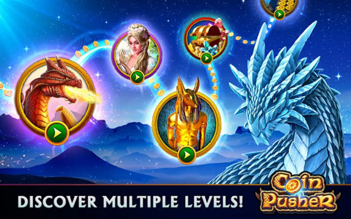 Are you a lover of coin pusher games? Youβve just found the most original coin drop casino simulator that blends perfectly with your world explorer and treasure hunting games taste! Our unique arcade provides not only the classic coin dropper game play, but it mixes it with a treasure hunt for giving you a unique coin pusher experience in different level locations like: Treasure Cave, Gold of Ra, Diamond Rock & Temple of Venus!