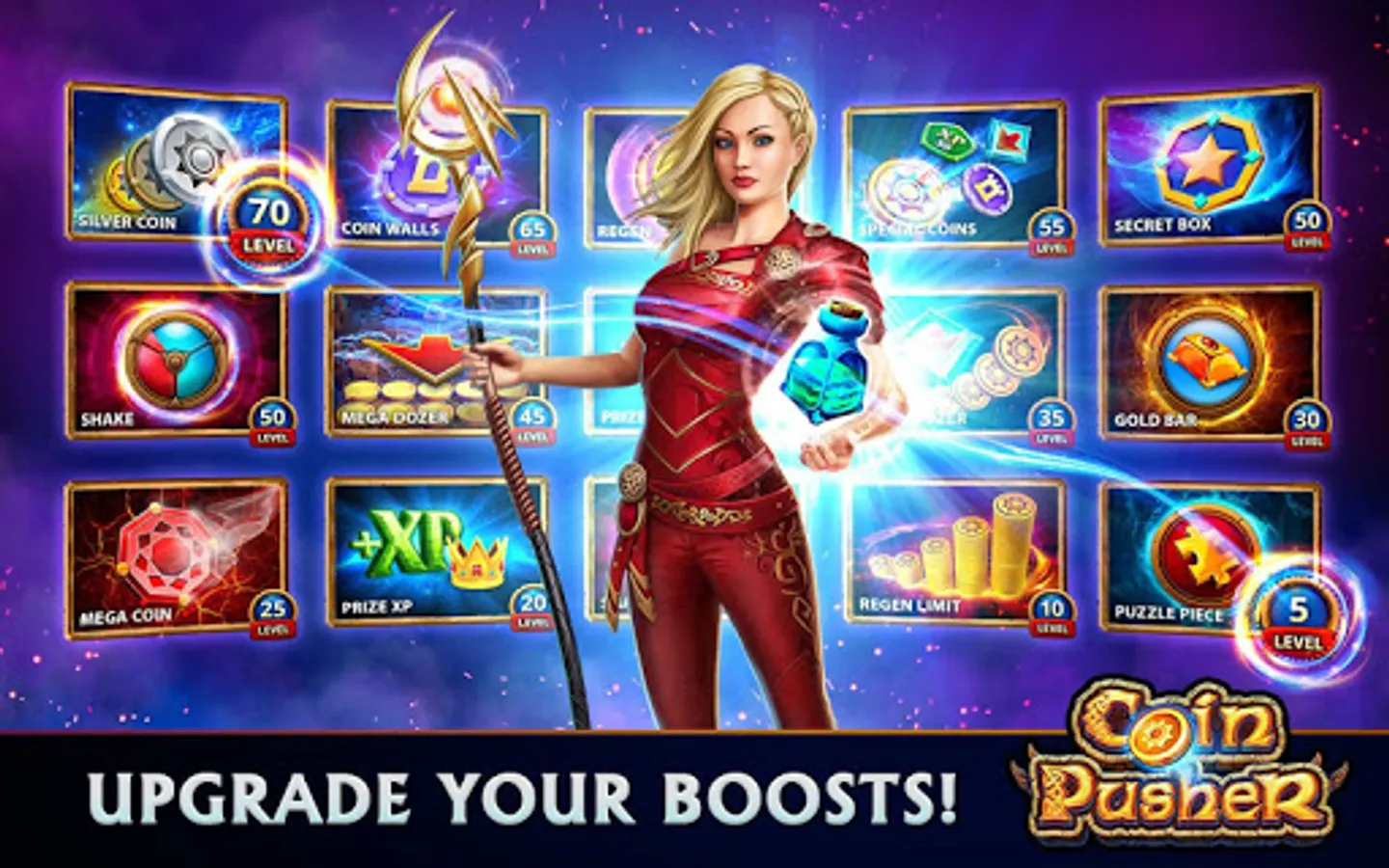 Not familiar with Coin Drop free games rules? No problem! It works almost the same like the real coin pusher games machines, and youβll see a short video tutorial. Tap the pusher to make coins drop on it. All the coins or prizes that fall on the sides wonβt be counted on your balance. The main goal is to drop coins & have them pushing over the front edge of the platforms. Our game includes incredible boosters that will help you on your cash collect quest. Check every booster special power & actions in the help section to build your winner strategy! Use the power ups wisely, as some of them donβt regenerate so fast as others. Gain XP points to increase your experience bar and unlock more maps and game levels. Our game can compete with the best prize claw machines or simulators in rewards matter; but unlike the claw machine, your chances of winning are much higher!