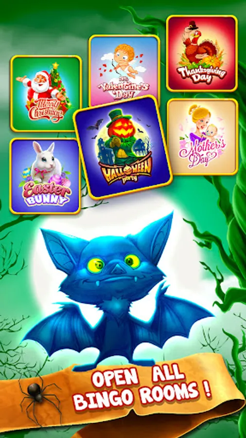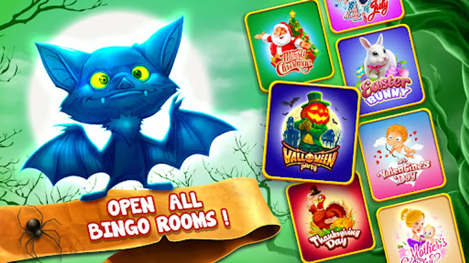 Ready to scream BINGO!? Join now to the best bingo live experience in the world! We know the Halloween spirit is always with the company of spooky but funny creatures, thatโs why we include them all with blitz bliss and enthusiasm! We proudly introduce you the totally renewed Halloween theme game, with tons of animated spooky characters like Dr. Frankenstein, Scarecrow Junior, the Haunted Pumpkin, the Scary Witch with her lucky blocking spells and the most important: the Ghosts Gang! They will try to scare you no matter what, for distracting you from our fast-paced live action! Stay sharp, donโt let them cause you to miss your number daubing! Play your favorite game perfectly blended and themed with your favorite holiday season! Let the darkness invade your device and get ready to scream!