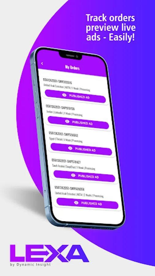Order Tracking: With our app, you can easily track your orders and see their progress. You'll know exactly when your ads will go live on social media platforms and Google.