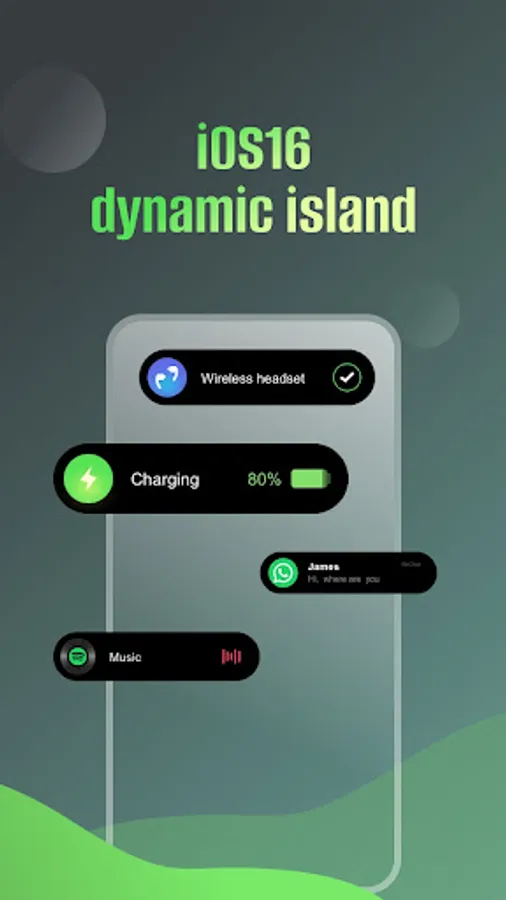 With iOsland, you can experience the dynamic island feature, which is originally exclusive to the iOS device - iPhone 14 Pro, on your Android device.