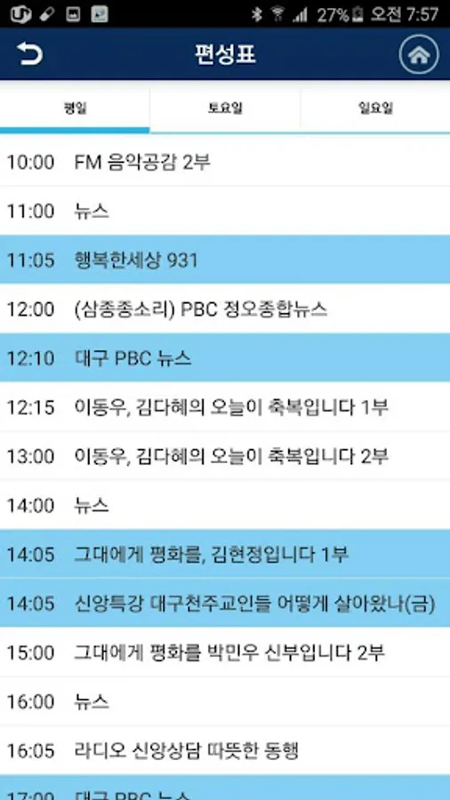 - Broadcast Daegu Catholic Peace FM 93.1MHz | Pohang FM 96.9MHz | Gimcheon FM 100.5MHz | Anton FM 100.7MHz channel listening