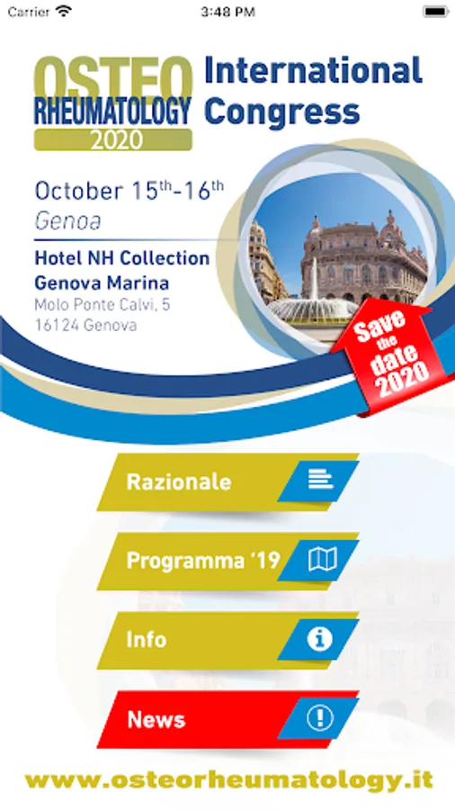 Application of the OsteoRheumatology International Congress which will take place in Genoa on 15-16 October 2020.