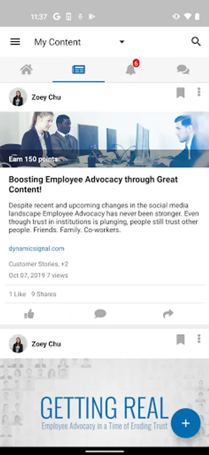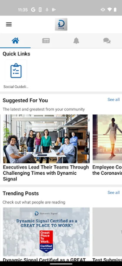 The Dynamic Signal Open app provides users the latest Employee Communication and Engagement (ECE) content, which highlights market trends, best practices, and how to best reach and engage with your most valued asset – your employees. All of this is delivered through a fully operational Dynamic Signal community that modernizes, streamlines, and measures employee communication. DySi Open users have access to all of the following features upon signing-up: